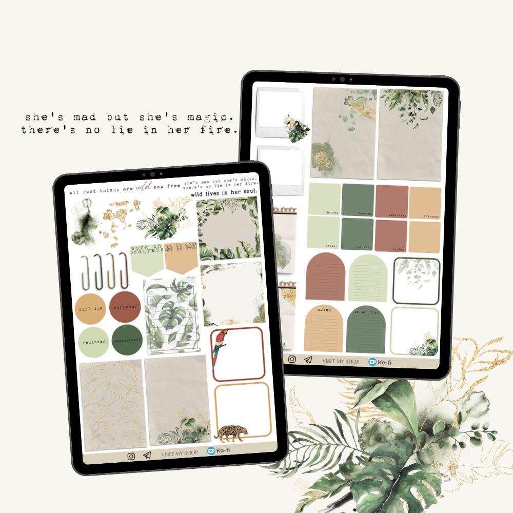 Jungle stickers, GoodNotes & PNG