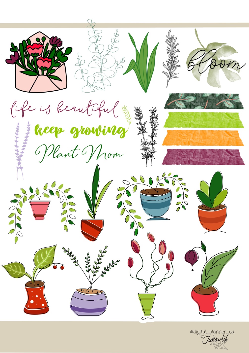 Another Beautiful Plants Stickers with Washi taper, memo notes etc