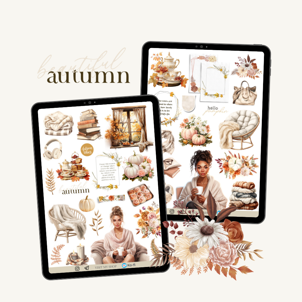 Cozy Autumn Home stickers, GoodNotes & PNG