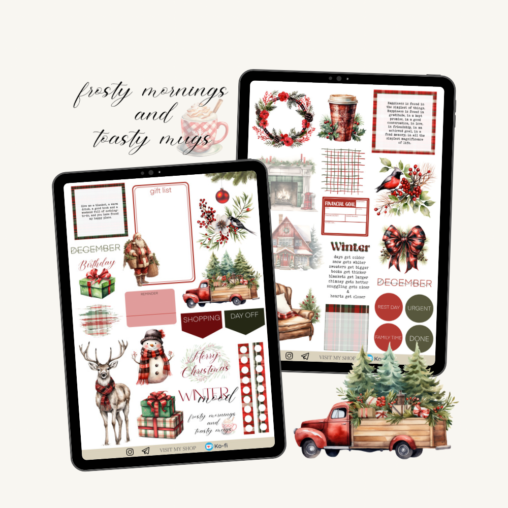 Plaid Winter stickers, GoodNotes & PNG