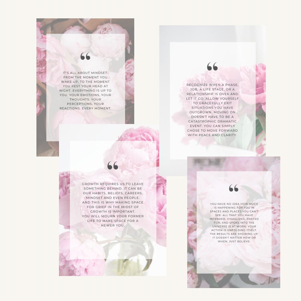 - 8 motivational card with peonies, PNG.