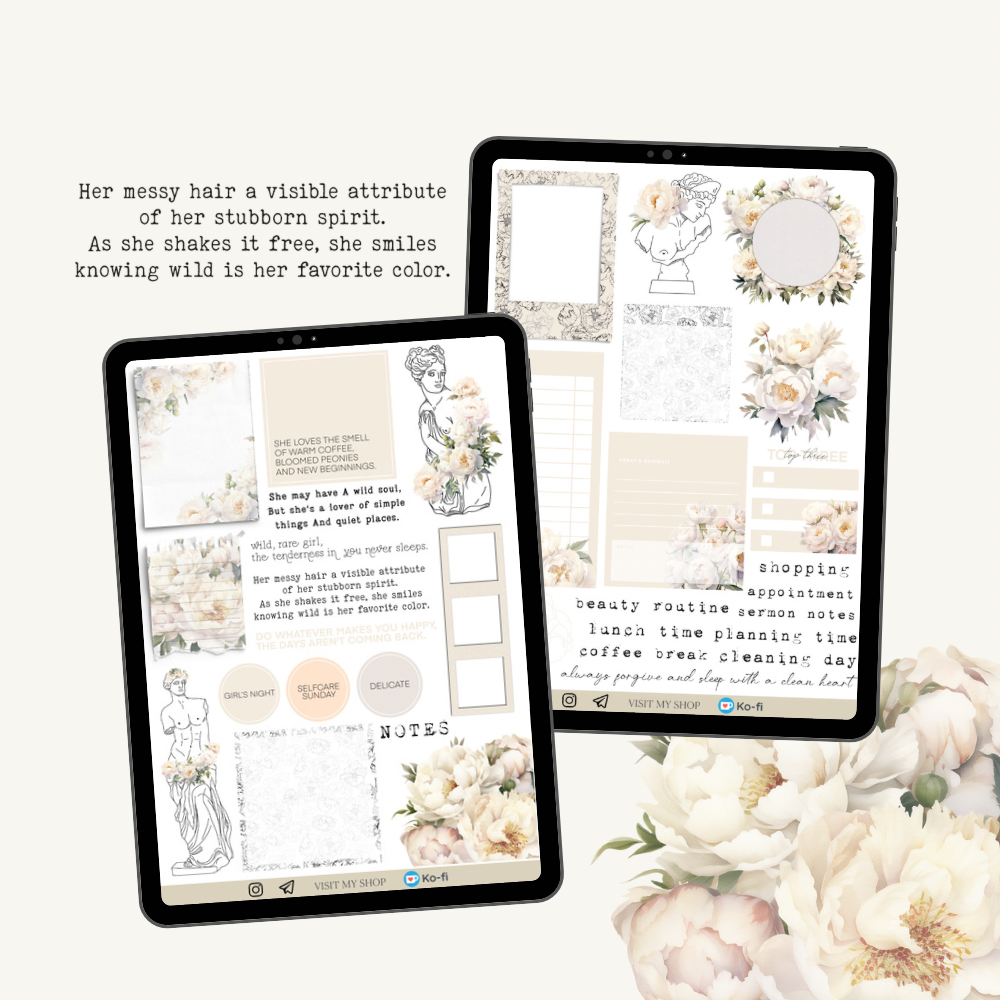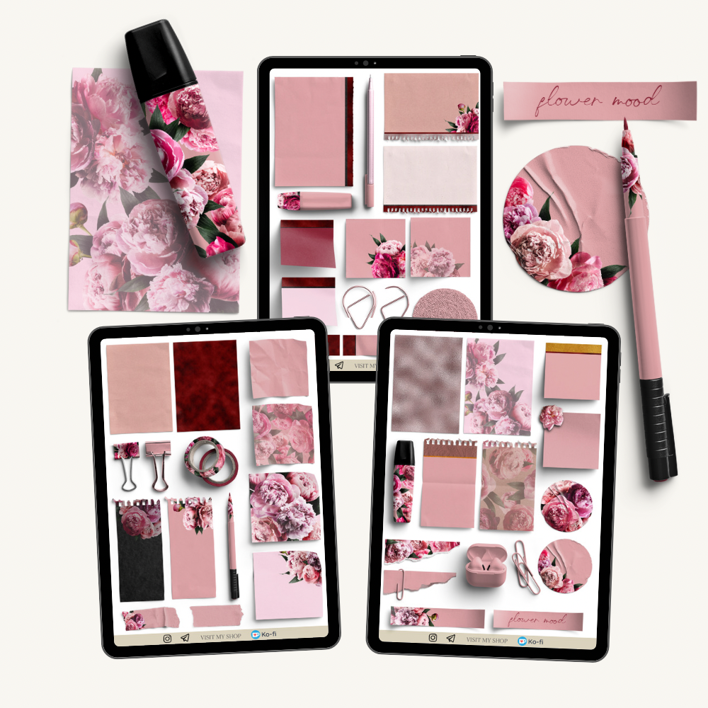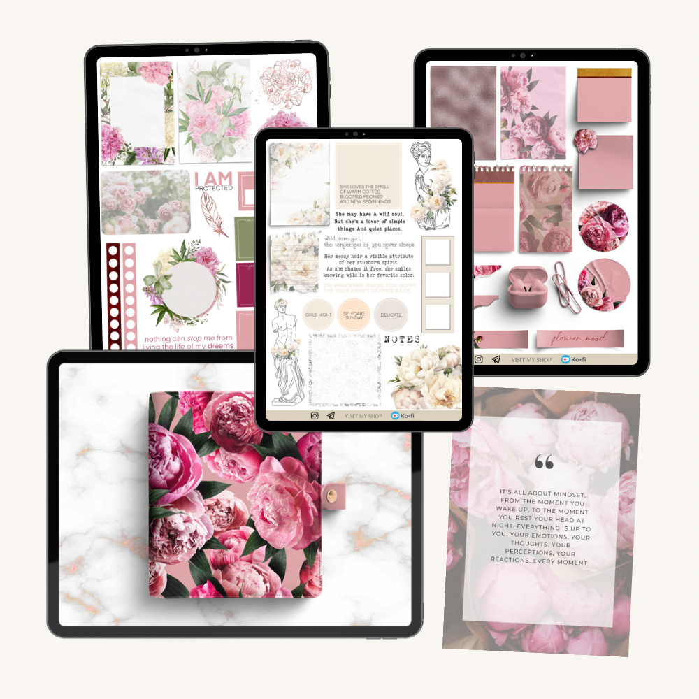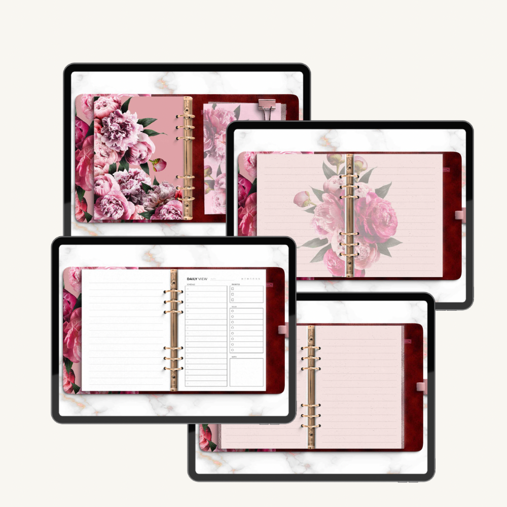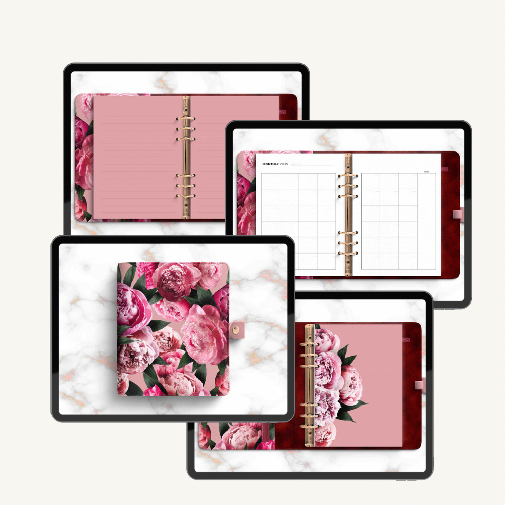 Great Peony Bundle, GoodNotes & PNG stickers, PDF planner
