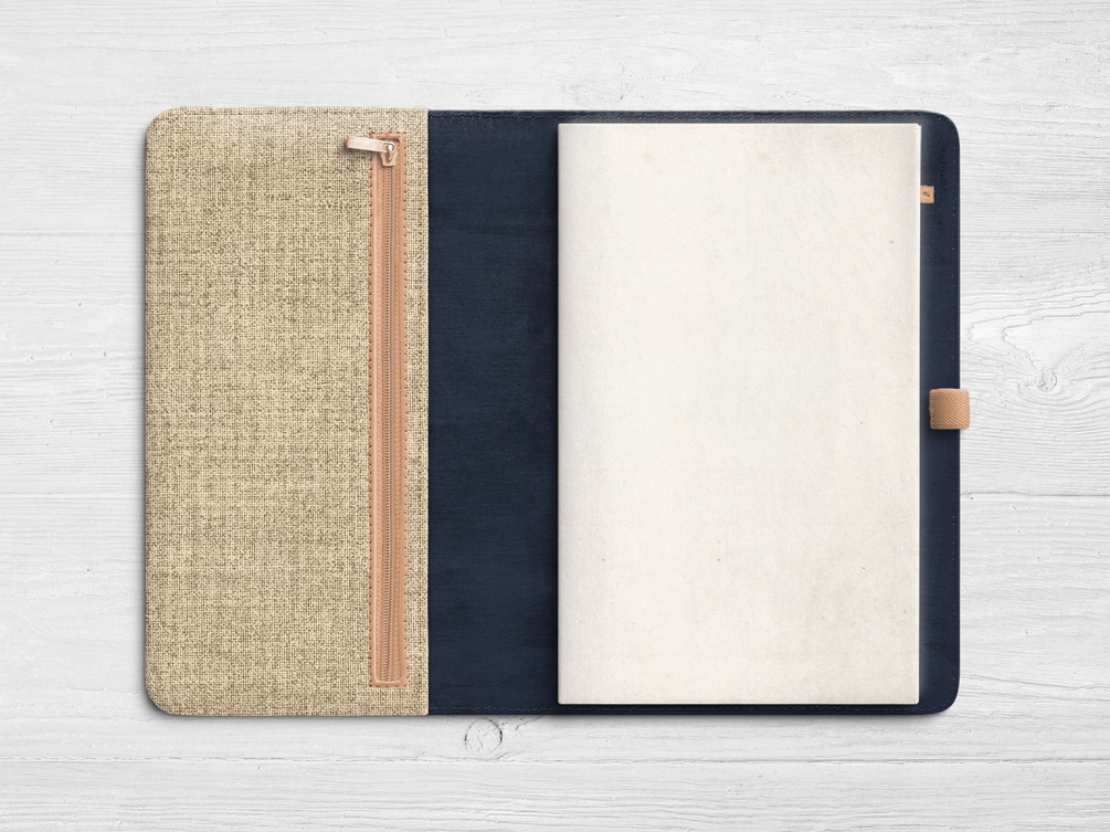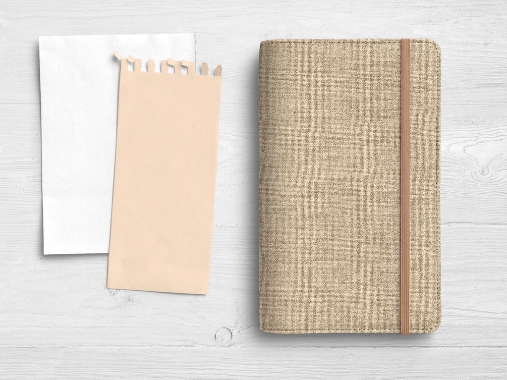10 pages cotton/linen cover realistic notebook for journaling. Included 7 different templates pages, all of it with handcrafted texture paper and doted grid: blank page, 2 different pages with cotton illustration, page with Greek sculpture, first and last pages, cover and one page for collage.