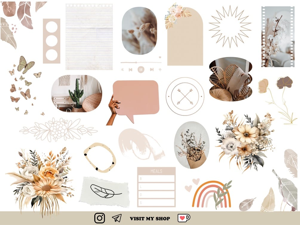 1 page 24 pre-cropped neutral decorative elements for planning and journaling. GoodNotes ONLY