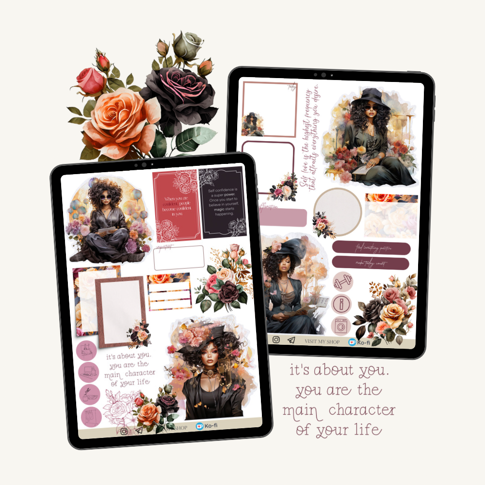 Confident Girl stickers, GoodNotes & PNG