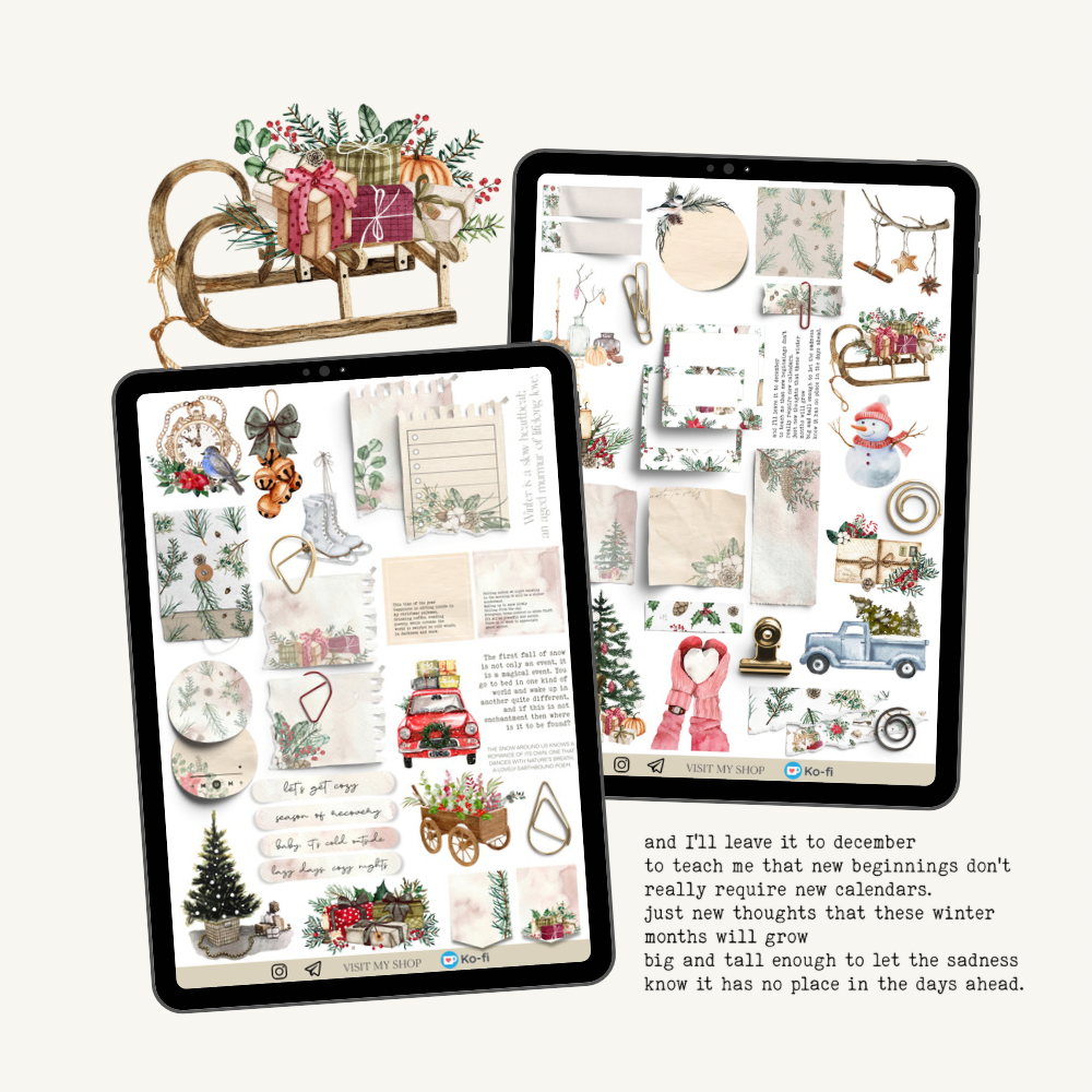 Watercolour Winter stickers, GoodNotes & PNG