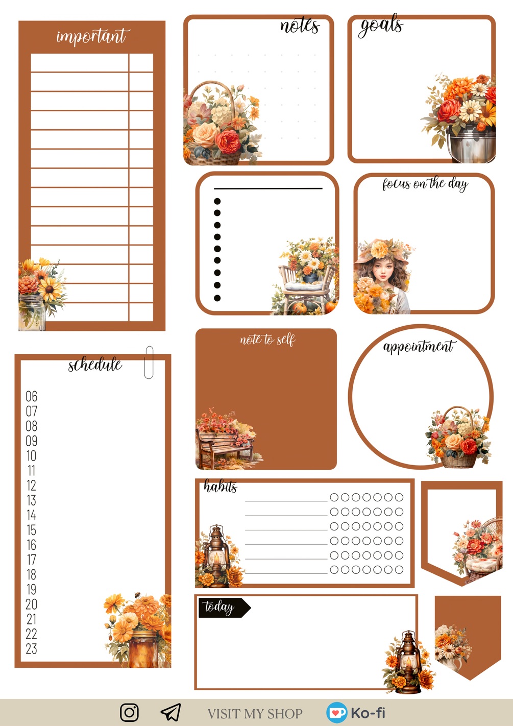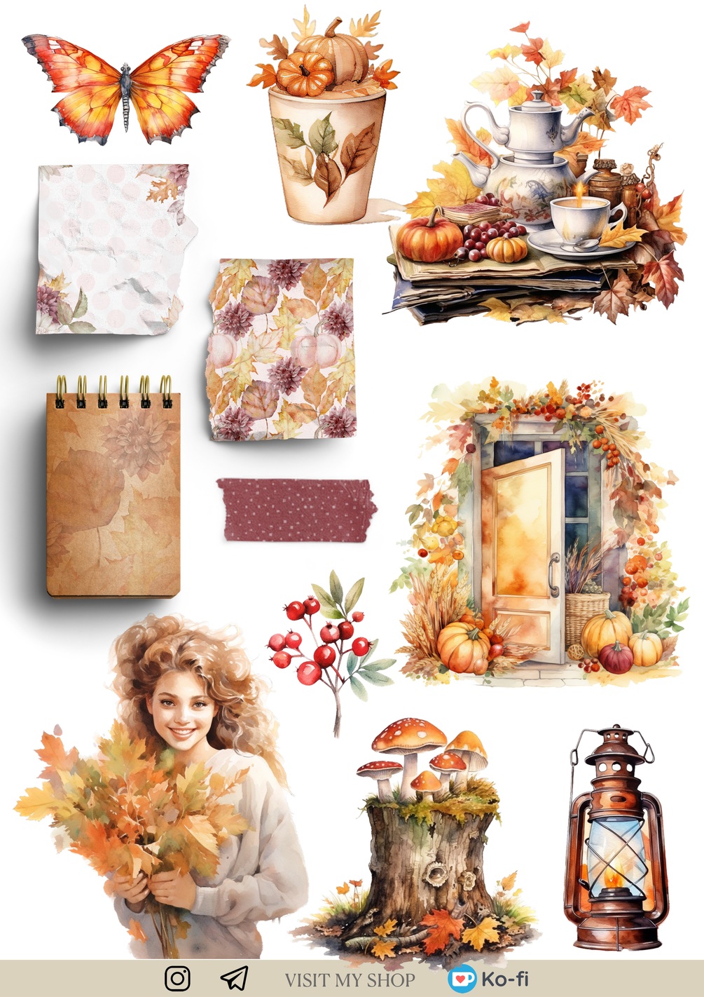 5 pages 68 pre-cropped decorative autumn elements, realistic paper and functional stickers, GoodNotes ONLY
