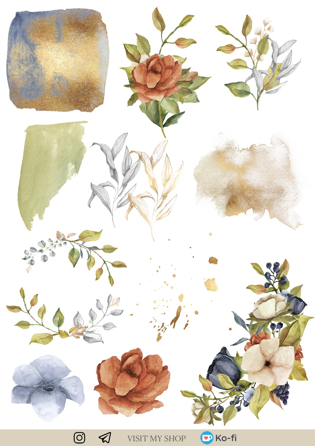 ! Paper and watercolor stickers are individual PNG & GoodNotes files. Grids are separates png. Words and numbers NOT separates. Look at folder named Functional. Total more than 80 stickers